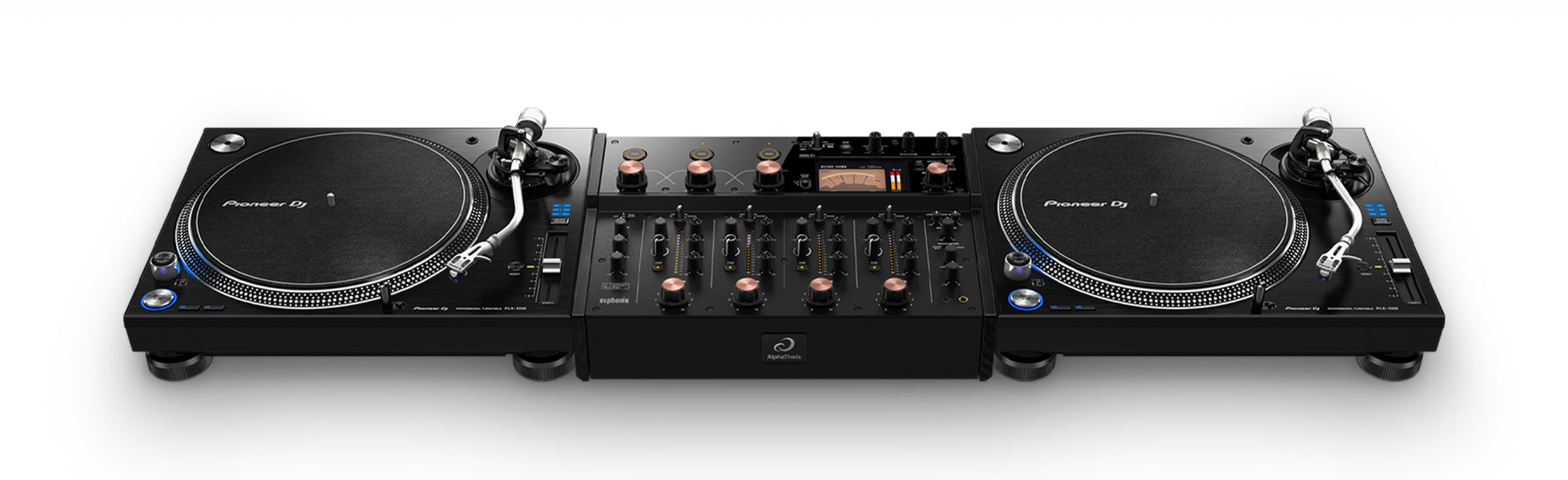 The euphonia produces a euphoric sound with the clarity of digital and the richness of analog that’s never been heard from a DJ mixer before.To deliver a clearer sound quality that accurately reproduces the expression of the music, the euphonia uses high-quality 32-bit A/D and D/A converters as well as 96kHz/64bit floating point mixing processing operations in the DSP, utilizing the digital signal processing technology AlphaTheta has developed over many years.