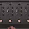 The euphonia was designed to signify a new era of rotary mixers, with a “two-tone, two-layer” look symbolizing tradition and innovation. The channel strip section, which comprises traditional mixer elements, is distinguished from the innovative display section by matte and gloss textures, resulting in a crisp design that combines analog and digital elements. The copper color of the primary knobs conveys the warmness of analog sound, and the wood side panels are painted black to blend in with the overall aesthetic.