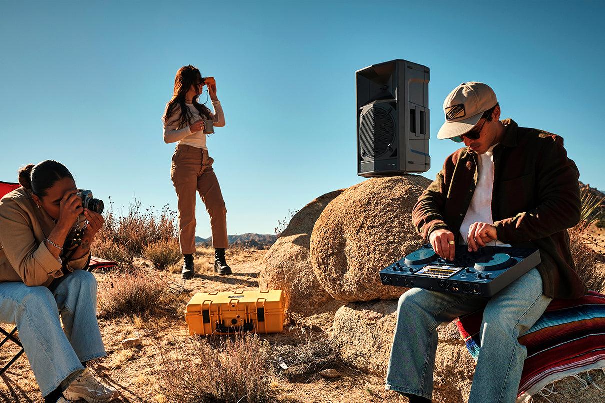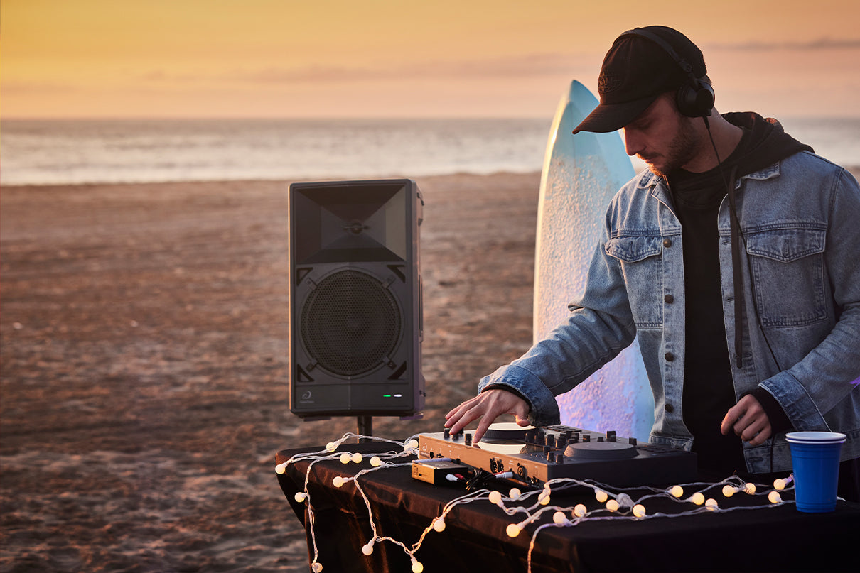 Take the included transmitter out of its storage compartment on the WAVE-EIGHT and connect it to your DJ gear, and you can instantly create a wireless connection, enabling you to throw a DJ party anywhere you want. And if you combine the WAVE-EIGHT with the new OMNIS-DUO portable all-in-one DJ system, which features battery power, you can play cable-free for total freedom.